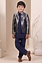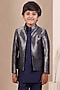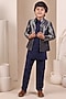 Navy Blue Handwoven Tussar Bandhgala Set For Boys