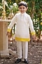 Off-White & Yellow Soft Linen Patch Work Kurta Set For Boys