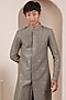 Olive Green Knit Tweed Sequin Embellished Achkan Set For Boys