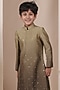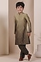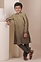 Olive Green Ombre Chanderi Silk Achkan Set For Boys
