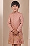 Onion Pink Tissue Silk Floral Motif Embroidered Achkan Set For Boys