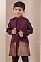 Wine Handloom Moonga Jacket Set For Boys
