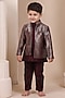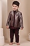 Featuring a wine bandhgala for boys in handwoven tussar base. It is paired with a chanderi silk kurta and pyjama. Style it with a watch and a classic pair of loafers and a bracelet for a wedding or sangeet ceremony.