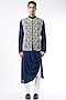 Featuring a black bundi jacket in raw silk base with zardosi hand embroidery. It is paired with a contrasting cotton silk kurta and pants.