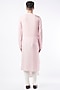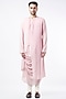 Featuring a blush pink draped kurta in muslin base with a one-sided cowl at the hemline. It is paired with contrasting off-white cotton silk churidar pants.