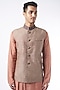 Brown Linen Printed Bundi Jacket