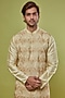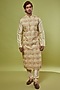 Featuring an ivory kurta in cotton silk base with motif corded embroidery. It is paired with matching pants.