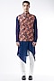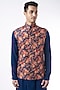 Featuring a navy blue bundi jacket in raw silk base with floral digital print. This contains only one piece.