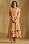 Featuring a beige anarkali in silk base with gota work. It is paired with palazzo pants and a chanderi tissue dupatta. Accentuate it with statement jewellery and heels for a festive look, diwali celebration or wedding ceremony.