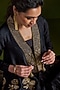 Featuring a black jacket in handmade tussar base with handcrafted tassels, cutdana work, zardosi and floral embroidery. It is paired with a silk inner and a lehenga. Accentuate it with statement jewellery and heels for festive occasions or wedding ceremonies.
