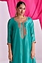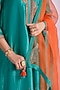 Featuring a green kurta in silk base with gota, thread and aari work. It is paired with pants and a dupatta. Accentuate it with statement earrings and heels for a festive occasion, mehendi, wedding or engagement ceremony.