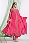 Featuring a pink anarkali in silk base with gota, thread and aari work. It is paired with pants and a dupatta. Accentuate it with kundan earrings, potli and heels for a festive occasion, wedding or engagement ceremony.