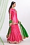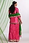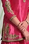 Featuring a pink kurta in silk base with gota, thread and aari work. It is paired with sharara pants and a dupatta. Accentuate it with statement earrings and heels for a festive occasion, weddings or engagement ceremony.