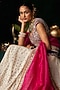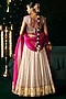 Featuring a white lehenga in chanderi jacquard base with embroidery. It is paired with an embroidered ikat silk blouse and an organza dupatta. Accentuate it with statement earrings and heels for weddings or sangeet ceremonies.