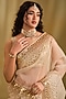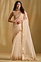 Featuring a white saree in silk base with gota work. It is paired with an organza blouse. Accentuate it with dangler earrings and heels for festive occasions or wedding ceremonies.