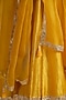 Featuring a yellow anarkali in silk base with gota, thread and aari work. It is paired with pants and an organza dupatta. Accentuate it with kundan earrings, potli and heels for a festive occasion, haldi, wedding or engagement ceremony.