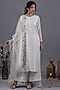 Featuring a bay salt kurta in linen silk base. It is paired with matching straight pants and an organza dupatta having handcrafted cutwork.