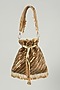Featuring a multi-colored potli in raw silk base with light gold salli and glass crystal hand embroidery. It has cotton silk lining and a belt.
