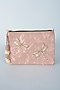 Featuring a soft pink sling bag in suede base with hand embroidered dragonflies and tassels, including a cross-body sling. It has a cotton silk lining.