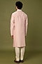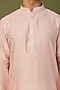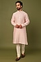 Featuring a baby pink kurta in pure chanderi base with machine thread embroidery. Style it with pants and mojaris for a festive occasion, cultural event, wedding, sangeet or engagement ceremony.