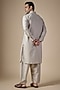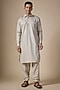 Featuring a beige pathani kurta in art silk base. It is paired with salwar pants. Style it with kolhapuri sandals for a festive occasion, cultural event, pooja or sangeet ceremony.
