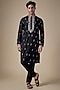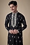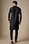 Featuring a black handcrafted kurta in art silk base with machine and hand embroidery. It is paired with pants. Style it with kolhapuri sandals for a festive occasion, cultural event, sangeet or wedding ceremony.