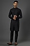 Featuring a black kurta in silk cotton base with embroidery. It is paired with matching pants.