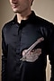 Featuring a black handcrafted shirt in poly cotton lycra base with aari embroidery. Style this shirt with plain black pants, a sleek watch and mules for semi-formal occasion or coffee outings.