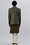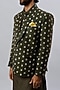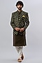 Featuring a dark olive blazer in velvet and viscose silk base with digital print. Style it with a kurta set and mojaris for a festive occasion, cultural event, wedding, sangeet or engagement ceremony.