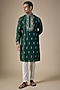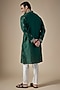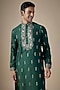 Featuring an emerald green handcrafted kurta in art silk base with machine and hand embroidery. It is paired with pants. Perfect wear for festive occasion, sangeet or mehendi ceremony.