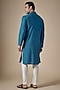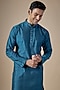 Featuring an indigo handcrafted kurta in art silk base pintuck detailing, machine and hand embroidery. It is paired with pants. Style it with kolhapuri sandals for a festive occasion, cultural event, engagement or wedding ceremony.