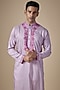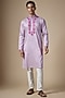 Featuring a lavender handcrafted kurta in art silk base machine and hand embroidery. It is paired with pants. Style it with kolhapuri sandals for a festive occasion, cultural event, engagement or wedding ceremony.