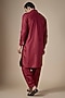Featuring a maroon pathani kurta in art silk base. It is paired with salwar pants. Style it with kolhapuri sandals for a festive occasion, cultural event, pooja or sangeet ceremony.
