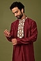 Featuring a maroon kurta in chanderi base with embroidery. Style it with pants and mojaris for a festive occasion, cultural event, wedding or engagement ceremony.