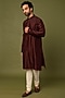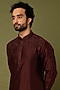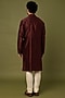 Featuring a maroon kurta in pure chanderi base with machine thread embroidery. Style it with pants and mojaris for a festive occasion, cultural event, wedding, sangeet or engagement ceremony.