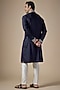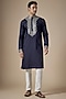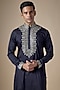 Featuring a navy blue handcrafted kurta in art silk base machine and hand embroidery. It is paired with pants. Style it with kolhapuri sandals for a festive occasion, cultural event, engagement or wedding ceremony.