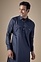 Navy Blue Art Silk Pathani Kurta Set