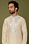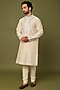 Featuring an off-white kurta in pure chanderi base with applique embroidery. Style it with pants and mojaris for a festive occasion, cultural event, sangeet, haldi, wedding or engagement ceremony.