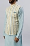 Featuring an off-white nehru jacket in viscose silk and velvet base with digital print. Style it with a kurta set and mojaris for a festive occasion, cultural event, sangeet, wedding or engagement ceremony.