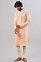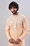 Featuring a peach kurta in pure chanderi base with mirror embroidery. Style it with pants and mojaris for a festive occasion, cultural event, wedding, sangeet or engagement ceremony.