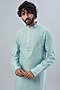 Featuring a powder blue kurta in pure chanderi base with thread embroidery. Style it with pants and mojaris for a festive occasion, cultural event, wedding, sangeet or engagement ceremony.