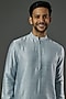 Featuring a sky blue kurta in silk cotton base. Style it with pants and mojaris for a festive occasion, cultural event, wedding, sangeet or engagement ceremony.