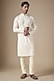 Featuring a white handcrafted kurta in art silk base with dori work. It is paired with pants. Style it with kolhapuri sandals for a festive occasion, cultural event, pooja or wedding ceremony.