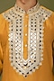 Featuring a yellow kurta in pure chanderi base with embroidery. Style it with pants and mojaris for a festive occasion, cultural event, sangeet, haldi, wedding or engagement ceremony.
