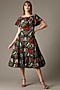 Featuring a forest green dress in cotton base with grasshopper digital print and frill shoulders.