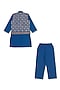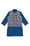 Blue Glace Cotton Mirror Work Bundi Jacket Set For Boys