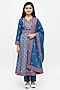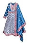 Blue Glace Cotton Printed & Mirror Embroidered Anarkali Set For Girls