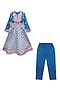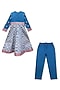 Featuring a blue anarkali for girls in glace cotton base with print and mirror embroidery. It is paired with pants and a dupatta. Accessorize it with matching hair accessories and sandals for a stylish ensemble, ideal for festive occasion.