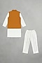 Mustard Yellow Glace Cotton Leather Work Bundi Jacket Set For Boys