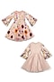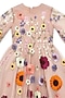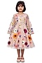 Featuring a pink dress for girls in net base with print and embroidery. Accessorize it with matching hair accessories and sandals for a stylish ensemble, ideal for any festive occasion or birthday party.